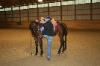 1. Shorten rein and bend horse’s head around towards you with left rein in left hand. Note: The
